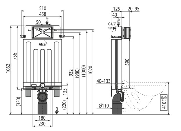 Alcaplast ALCAMODUL AM100-1000E predstenový inštalačný systém Ecology určený pre zamurovávanie, s inštalačnou výškou 100 cm, úsporné splachovanie 2/4l