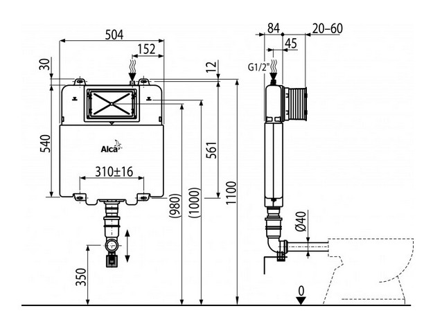 Popis Alcaplast BASICMODUL AM1112 predstenový inštalačný systém SLIMAlcaplast určený pre zamurovanie, s inštalačnou výškou 107 cm, pre stojacu wc misu