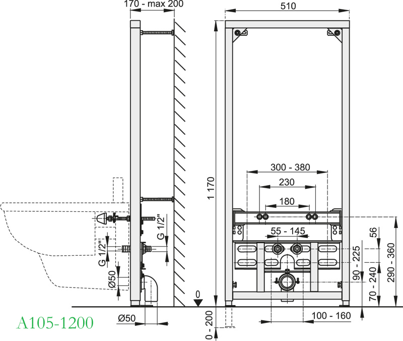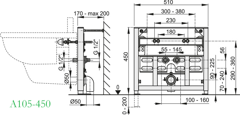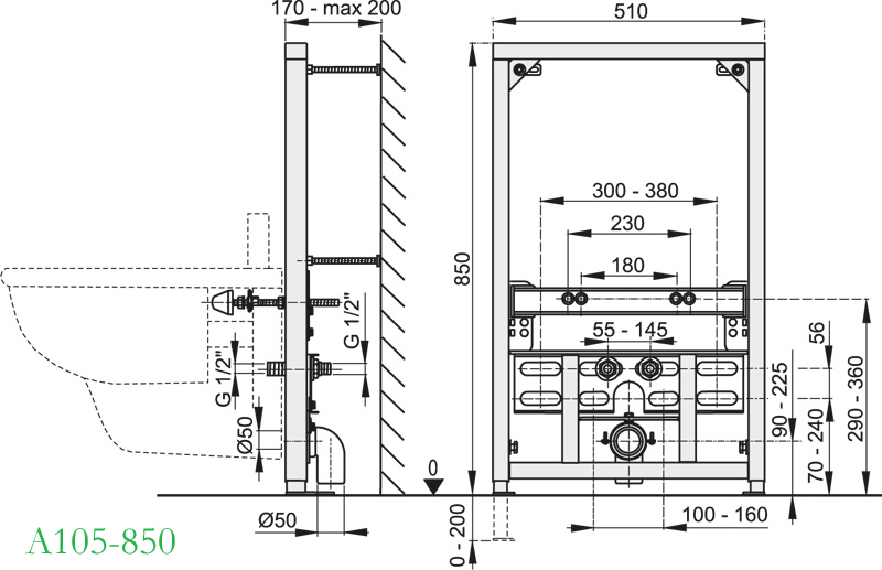 Popis Alcaplast montážny rám pre bidet A105-450, A105-850, A105-1120Alcaplast montážny rám do sadrokartónovej konštrukcie, inštalačná výška 45, 85, 112 cm