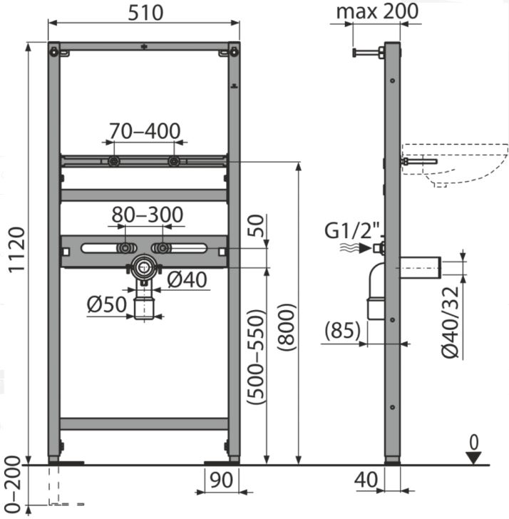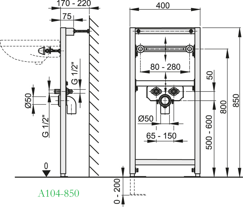 Popis Alcaplast montážny rám pre umývadlo A104-850, A104-1120Alcaplast montážny rám pre umývadlo do sadrokartónovej konštrukcie, inštalačná výška 85, 112 cm