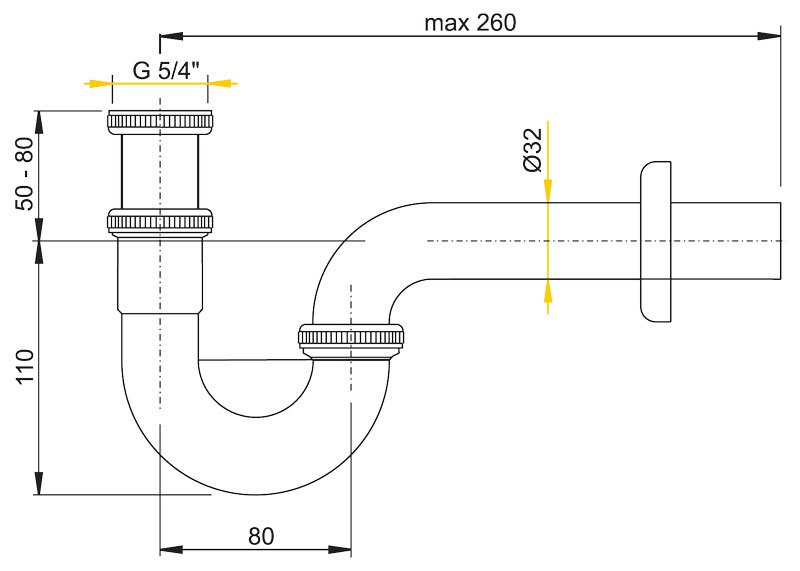 Popis Alcaplast pol-sifón umývadlový kovový chróm trubkový DN32 A432Alcaplast polsifón celokovový, 5/4" prevlečná matica, 32 mm odpadová rúrka