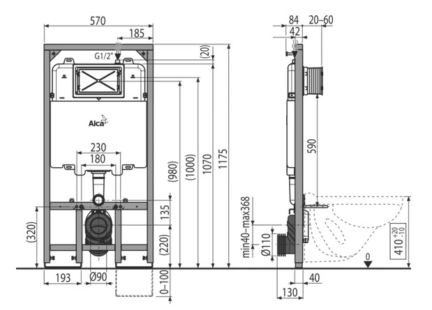 Popis Alcaplast SADROMODUL AM1101/1200 predstenový inštalačný systém SLIMAlcaplast určený pre zamurovanie, s inštalačnou výškou 107 cm, pre stojacu wc misu
