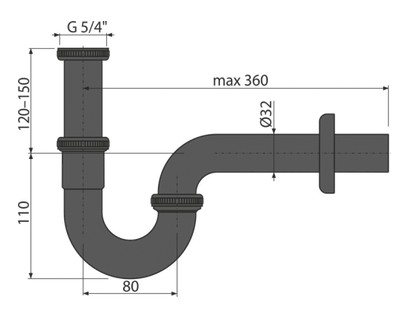 Popis Alcaplast trubkový polsifón umývadlový predĺžený DN32 čierna-matAlcaplast polsifón celokovový predĺžený, 5/4" prevlečná matica, 32 mm odpadová rúrka