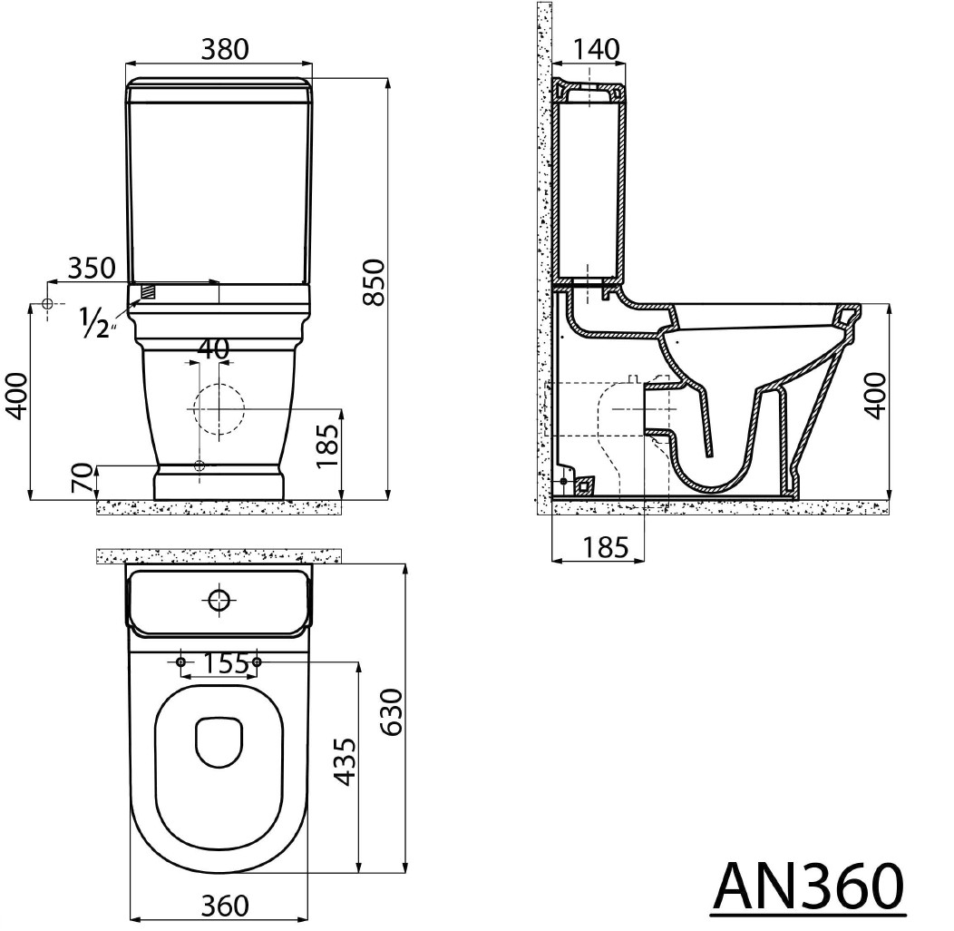 Popis ANTIK Retro WC setSapho rozmer 38 x 85 x 63 cm, zadný/spodný odpad