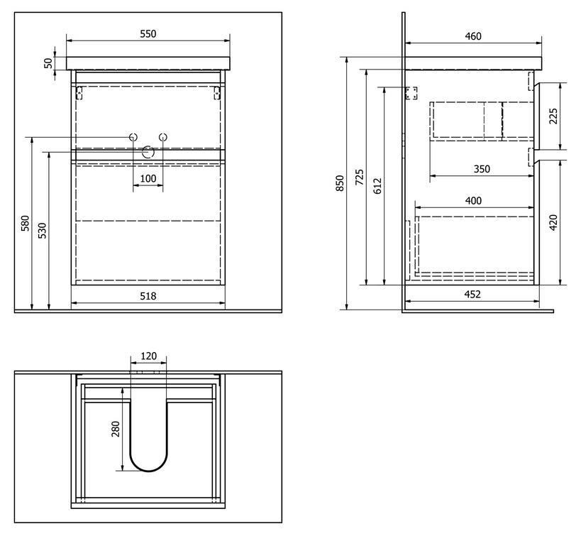 Popis Aqualine ALTAIR umývadlová skrinka 55 cm bielaAqualine rozmery skrinky: 51,8x72,5x45,2 cm, rozmery umývadla: 55x16,5x46 cm