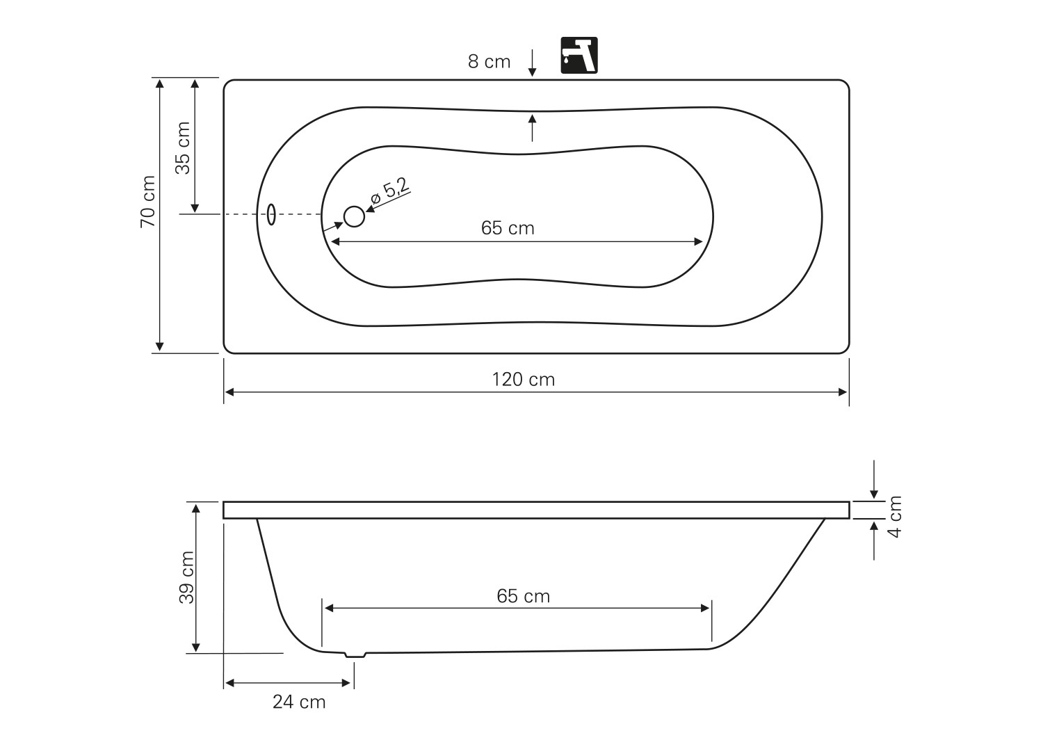 Popis Aqualine JIZERA obdĺžniková vaňa akrylátová 120cmAqualine Rozmery: 120 x 70 x 39 cm, Objem: 120 l