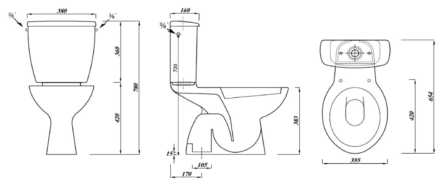 Popis Aqualine MIGUEL WC misa kombi s nádržkouAqualine rozmery: 350 x 780 x 650 mm, spodný odpad, materiál: keramika, vrátane nádržky a plachovacej súpravy
