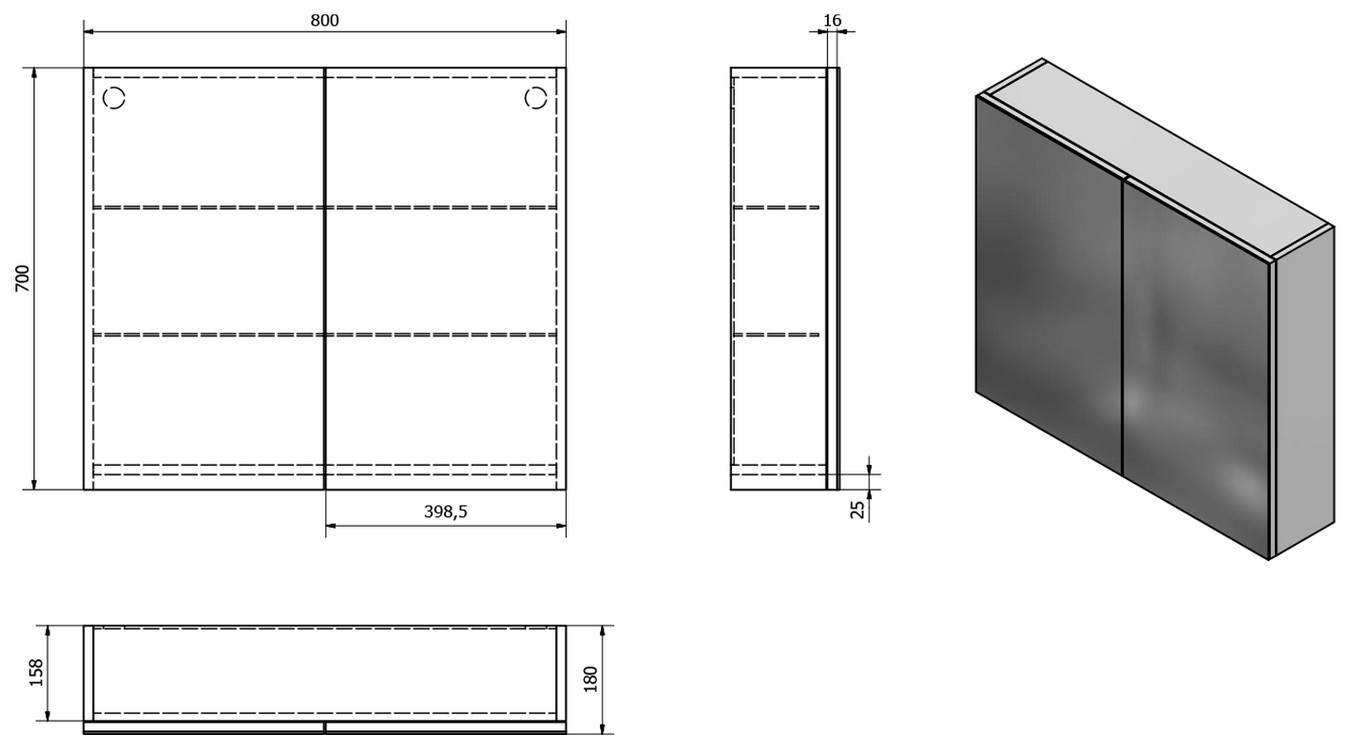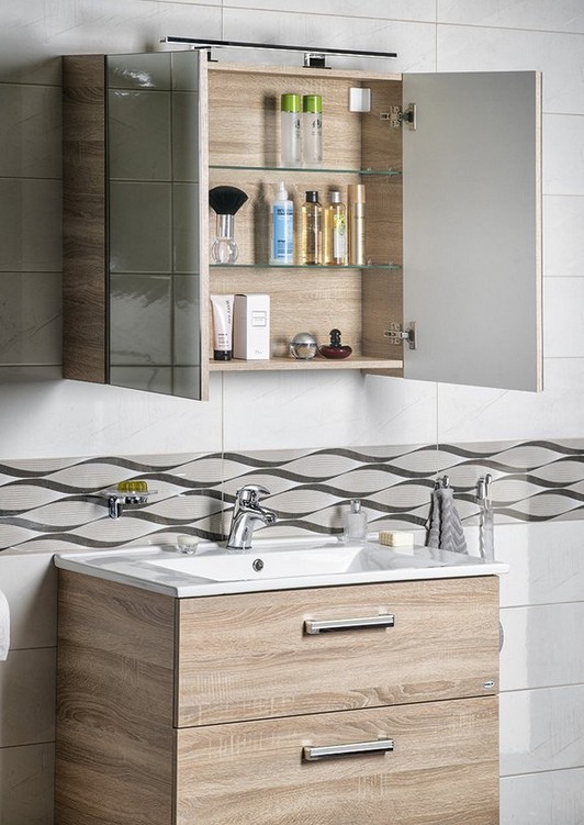 Popis Aqualine VEGA zrkadlová skrinka 80 cm dub platinAqualine rozmery: 800 x 700 x 180 mm, farba: dub platin, materiál: MDF/lamino