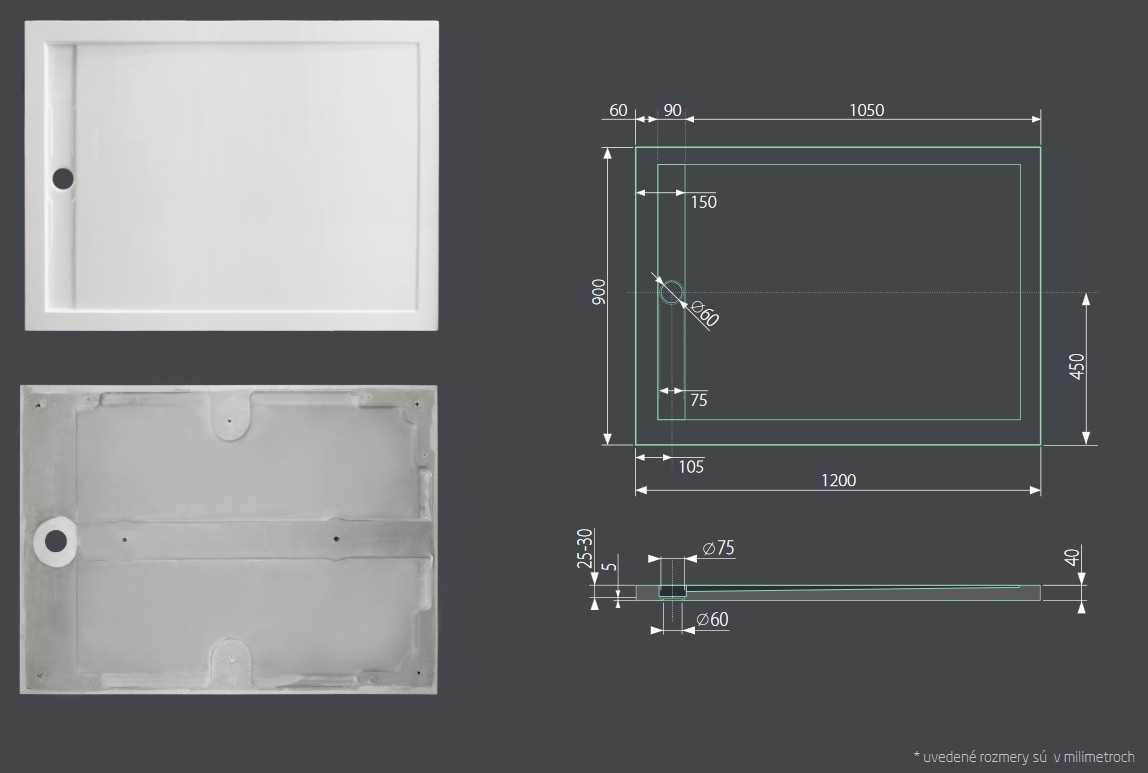 Popis Aquatek LEVEL obdĺžniková sprchová vanička 120 x 80/90 cm liaty mramorAquatek rozmer: 120x80/90x4 cm, materiál: liaty mramor, biela, s odtokovým žľabom