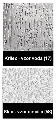 Výplň Cincilla je sklená výplň, Krilex voda je plastová vyplň. Vizuálny rozdiel môžete vidieť v galérii. Výhodou sklenej výplne je ľahšia údržba, dlhšia životnosť, väčšia hrúbka, pevnosť a odolnosť. V neposlednom rade sklená výplň prevyšuje plastovú výplň z hľadiska dizajnu. Sklo Cincilla má napohľad zaujímavú štruktúru, ktorá ho robí nepriehľadným.