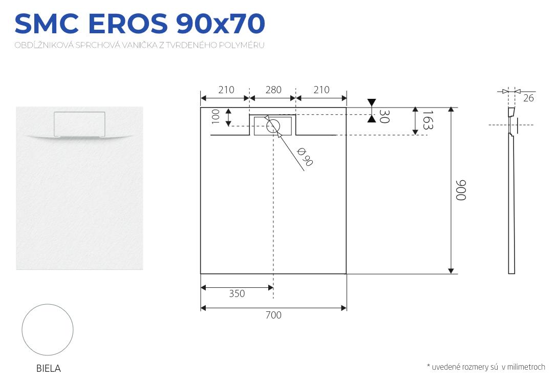 Popis Aquatek SMC EROS obdĺžniková sprchová vanička 90 x 70 cmAquatek rozmery: 90 x 70 cm, farba: biela, materiál: tvrdený polymér