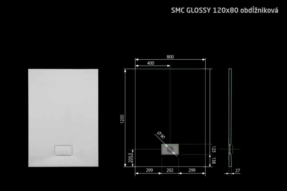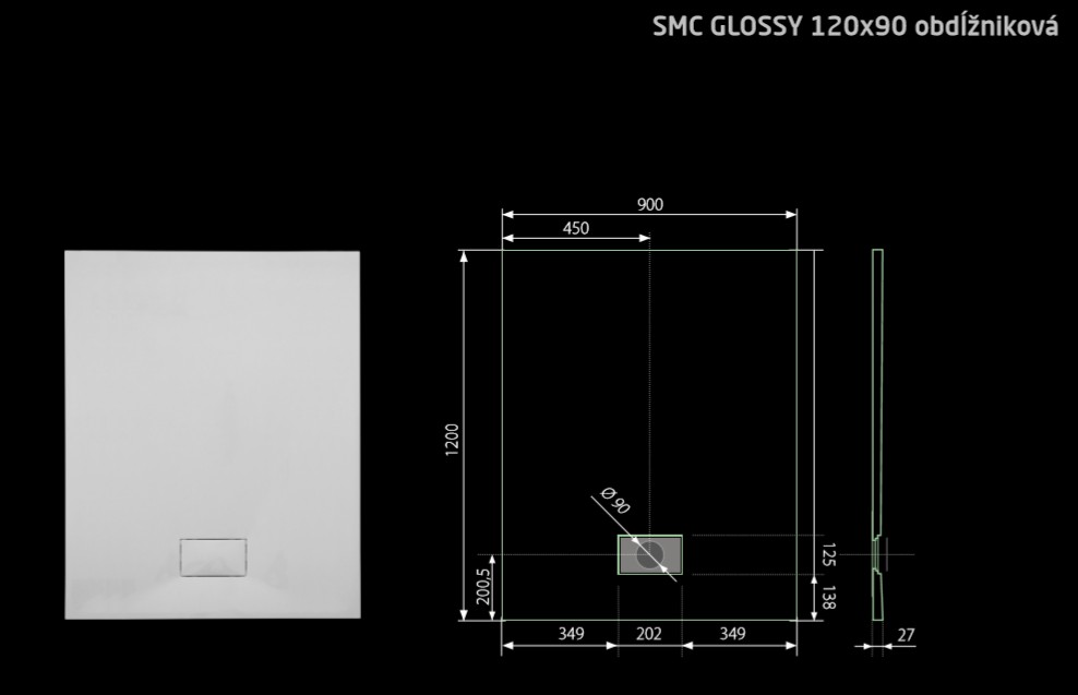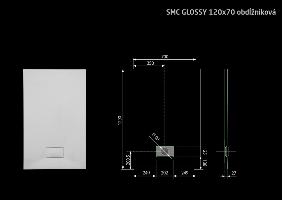 Popis Aquatek SMC GLOSSY obdĺžniková sprchová vanička 120 x 70 cmAquatek Rozmery: 120x70 cm, Farba: biela, Materiál: polymér