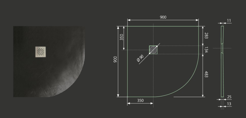 Popis Aquatek TOP štvrťkruhová sprchová vanička 90 x 90 cm čiernaAquatek Rozmery: 90x3x90 cm, Farba: čierna, Materiál: liaty mramor