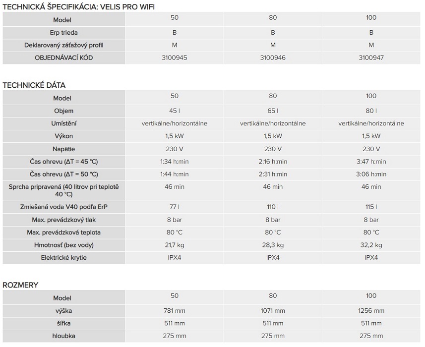 Popis Ariston VELIS PRO WIFI 50/80/100 elektrický bojler na vodu štíhly WIFI ovládanie