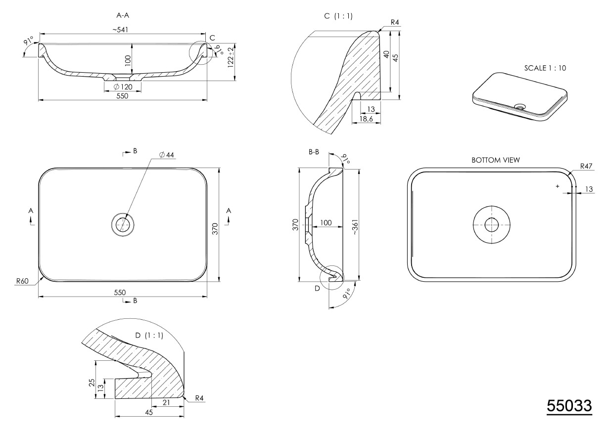 Popis ASTORIA umývadlo polozápustné z liateho mramoru 55 cmSapho rozmery: 55 x 12 x 37 cm, materiál: liaty mramor, bez prepadu, druh montáže: polozápustné