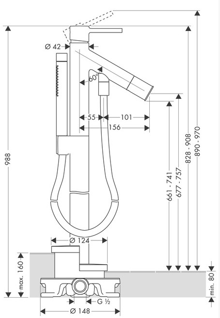 Popis Axor STARCK vaňová batéria do podlahyAxor vhodná pre samostatne stojace vane, automatické prepínanie vaňa/sprcha