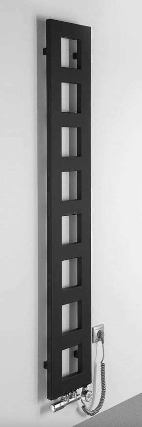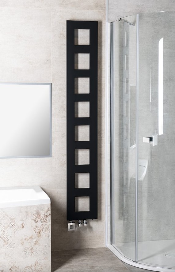BLOCK čierny kúpeľnový radiátor 28 x 175 cm matnýšírka 28 cm, výška 175 cm, stredové pripojenie na ústredné kúrenie