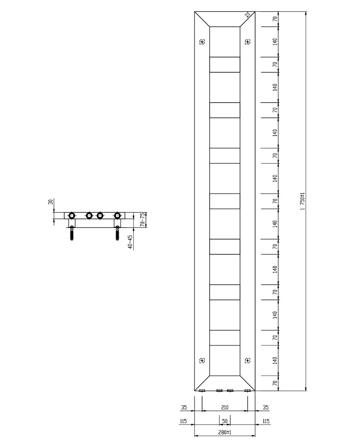 Popis BLOCK čierny kúpeľnový radiátor 28 x 175 cm matnýSapho šírka 28 cm, výška 175 cm, stredové pripojenie na ústredné kúrenie