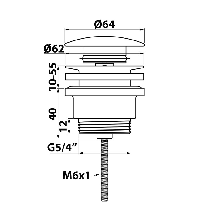 Popis Bruckner ClickClak výpusť umývadlová s veľkou zátkou, chrómBruckner pre umývadlá s prepadom, závit 5/4", pre umývadlá s hrúbkou 10-55 mm