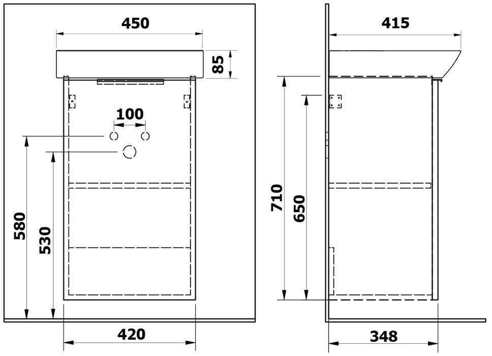 Popis Bruckner NEON skrinka s umývadlom 45 cm bielaBruckner rozmery skrinky: 420 x 710 x 348 mm, rozmery umývadla: 450 x 85 x 415 mm