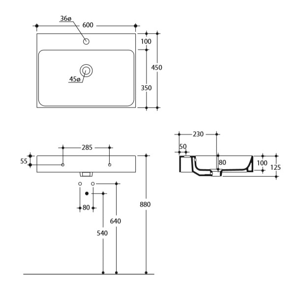 CENTO keramické umývadlo 60 cmRozmery: 60x10x45 cm, Farba: biela, Druh montáže: na zavesenie, Materiál: keramika