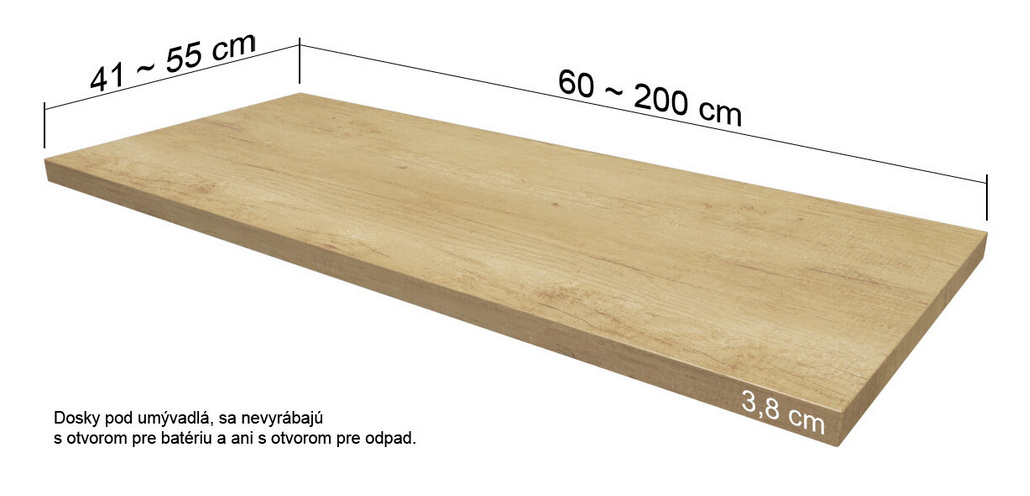 Ceramica Latina doska pod umývadlo 60-200 cm dub nebraskaDĺžka: 60-200 cm, Farba: dub nebraska, Druh montáže: na zavesenie
