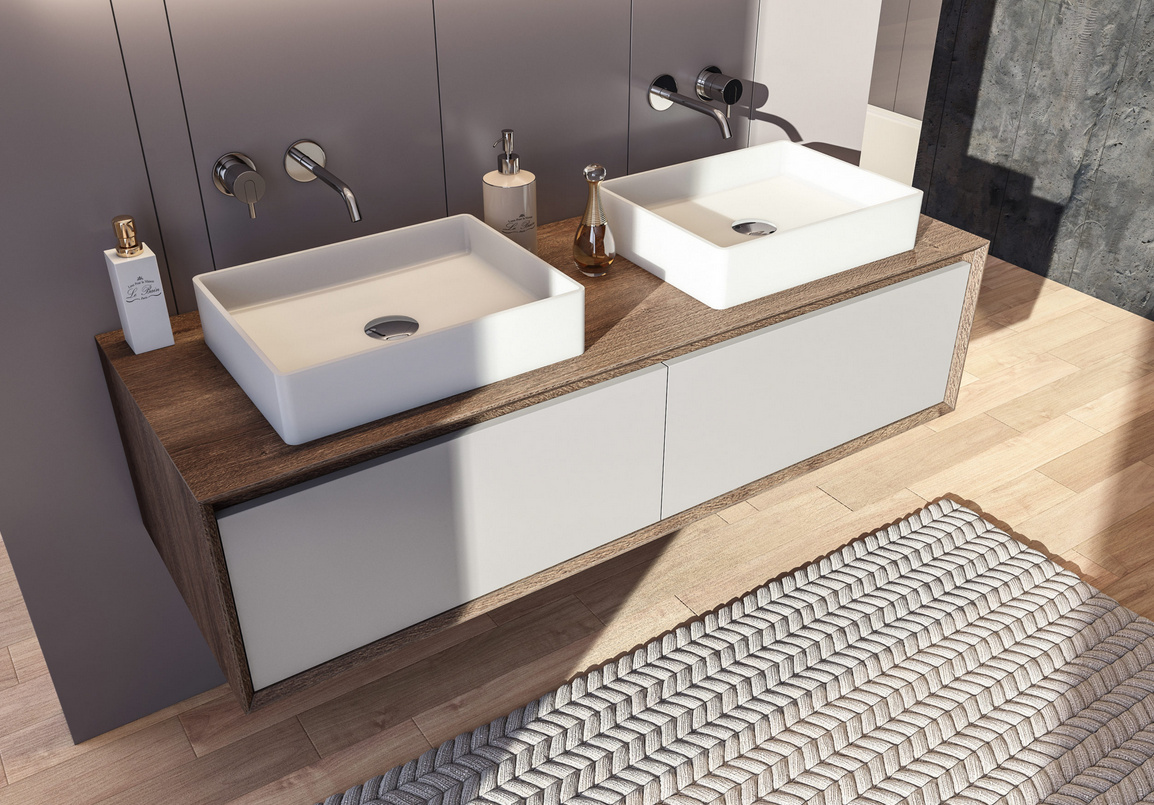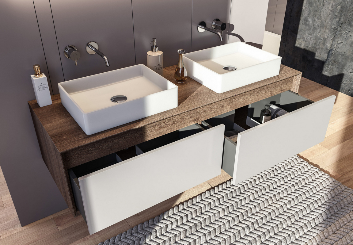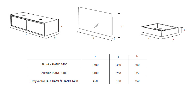 Popis Ceramica Latina PIANO skrinka 140 cm + 2x umývadlo + zrkadlo s podsvietenímCeramica Latina rozmery: 140x35x50 cm, s 2 zásuvkami, 2 umývadlá, zrkadlo s LED podsvietením