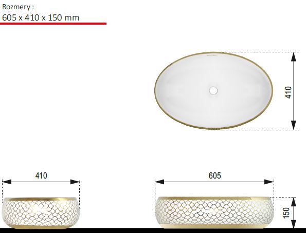 Popis Ceramica Latina PUPA umývadlo na dosku 60 cmCeramica Latina rozmery: 60,5 x 41 x 15 cm, materiál: keramika, farba: biela/zlatá, montáž: na dosku