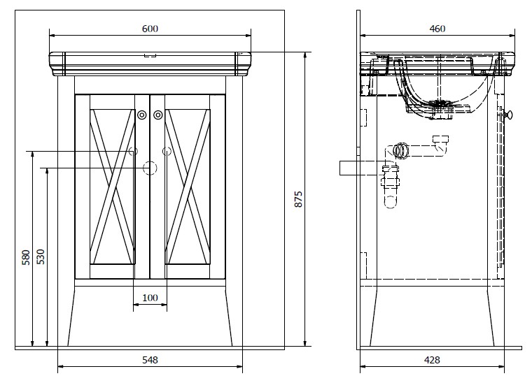 Popis CROSS retro skrinka s umývadlom 60 cmSapho Rozmery skrinky: 550 x 810 x 430 mm, Materiál: masív drevo, Farba: starobiela
