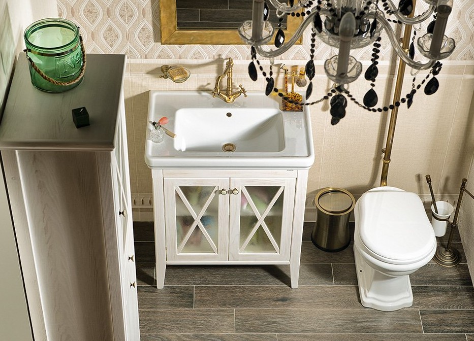 CROSS retro skrinka s umývadlom 60 cmRozmery skrinky: 550 x 810 x 430 mm, Materiál: masív drevo, Farba: starobiela
