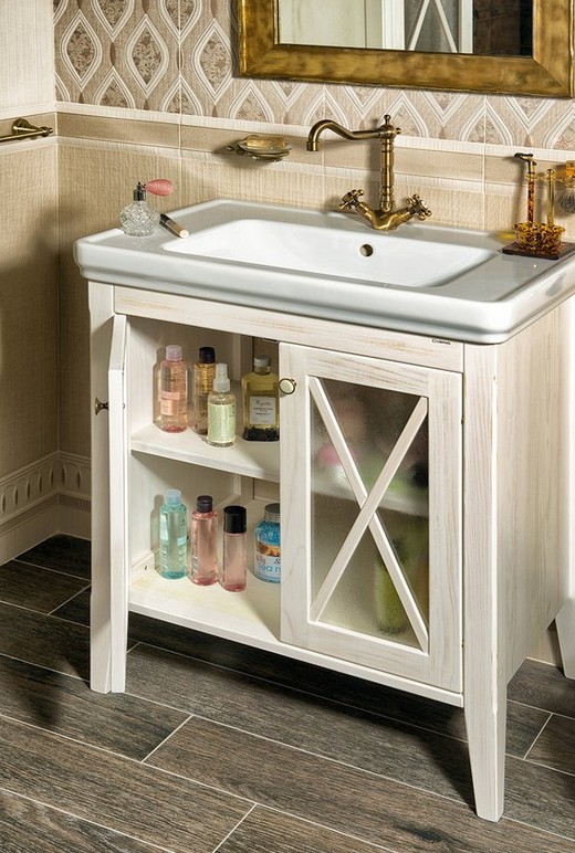 CROSS retro skrinka s umývadlom 75 cmRozmery skrinky: 700 x 810 x 470 mm, Materiál: masív drevo, Farba: starobiela