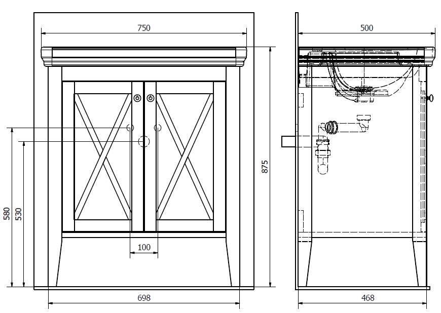Popis CROSS retro skrinka s umývadlom 75 cmSapho Rozmery skrinky: 700 x 810 x 470 mm, Materiál: masív drevo, Farba: starobiela