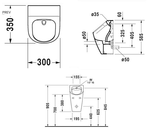 Duravit pisoár ME BY STARCK 30 x 35 rimlessRozmery: 300 x 350 mm, zadný prívod, rimless