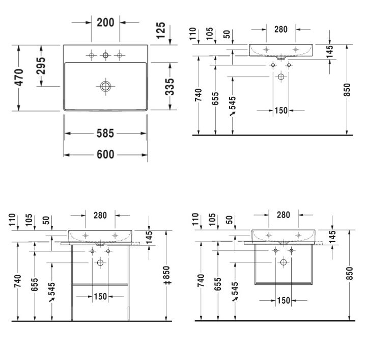 Popis Duravit umývadlo nábytkové DURASQUARE 60 cmDuravit keramické umývadlo, rozmer: 600 x470 mm, farba: biela, s prepadom, s otvorom pre batériu