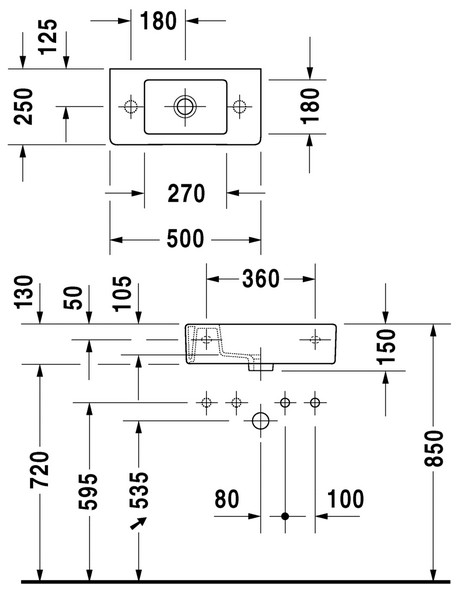 Duravit VERO umývadielko 50 x 25 cmumyvadielko o rozmeroch 50 x 25 cm, otvor vľavo, biela farba