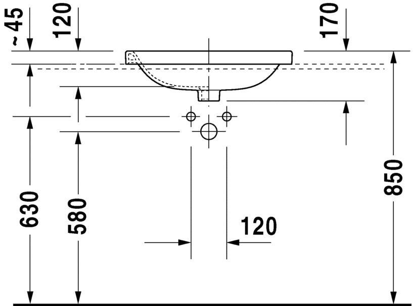 Duravit zápustné umývadlo 55 cm DURASTYLERozmery: 560 x 455 mm, s prepadom, s plochou pre batériu