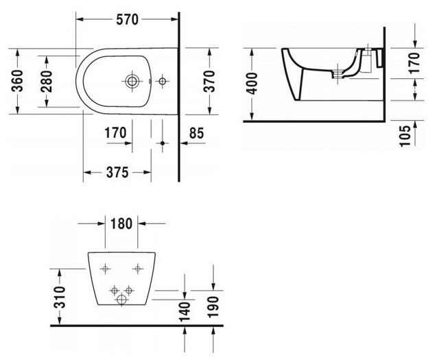 Popis Duravit závesný bidet ME BY STARCKDuravit rozmery: 370 x 570 mm, druh montáže: na stenu, s prepadom