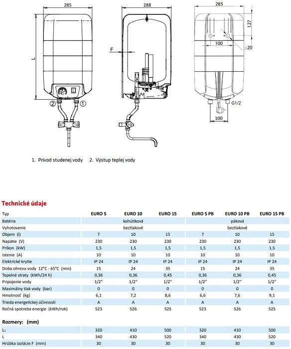 Popis Eliz EURO 10 PB ohrievač nad drez s pákovou batériouEliz 10 litrový beztlakový ohrievač vody nad drez/umývadlo, s pákovou batériou