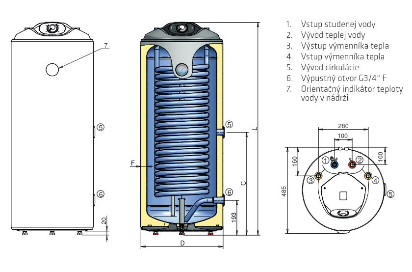 Popis Eliz EURO 100 THV stacionárny nepriamoohrevný ohrievač vodyEliz Objem: 100l, horné vývody, pripojenie pod kotol ÚK, energetická trieda B