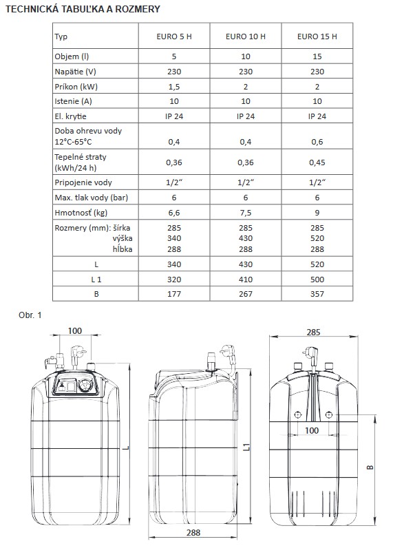 Tlakový zásobníkový ohrievač ELIZ EURO 10 HN je určený pre jedno odberné miesto alebo viac odberných miest s umiestnením pod umývadlo alebo pod drez. Vyznačuje sa rýchlym ohrevom a nízkymi tepelnými stratami.
