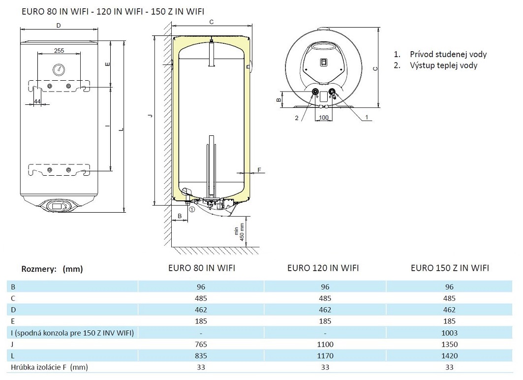 Popis Eliz EURO 150 Z INTELIGENT WIFI elektrický zvislý ohrievač vody