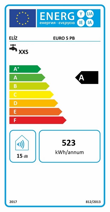 Popis Eliz EURO 5 PB ohrievač nad drez s pákovou batériouEliz 7 litrový beztlakový ohrievač vody nad drez/umývadlo, s pákovou batériou