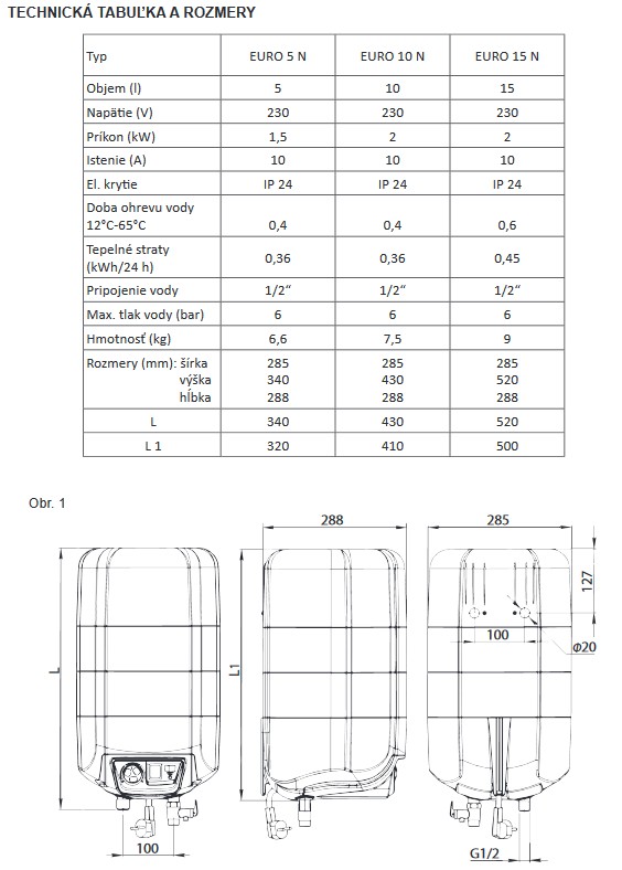 Popis Eliz EURO 5N ohrievač nad drezEliz 7 litrový tlakový ohrievač vody nad drez/umývadlo, bez batérie