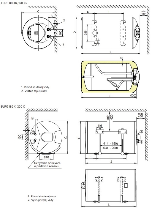 Konzola na uchyt je s roztečou 24 cm - všetky ohrievače to majú rovnaké, ak potrebujete je možne dodat "prevodnikovu konzolu EURO" kde je predpríprava na uchyt 45 a 35 cm, výhodná pomôcka v prípade, že nechcete vŕtať do steny . Maloobchodná cena prevodnikovej konzoly je 8,00 € s DPH .