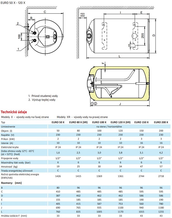 Popis Eliz EURO 80XR ohrievač elektrický ležatý