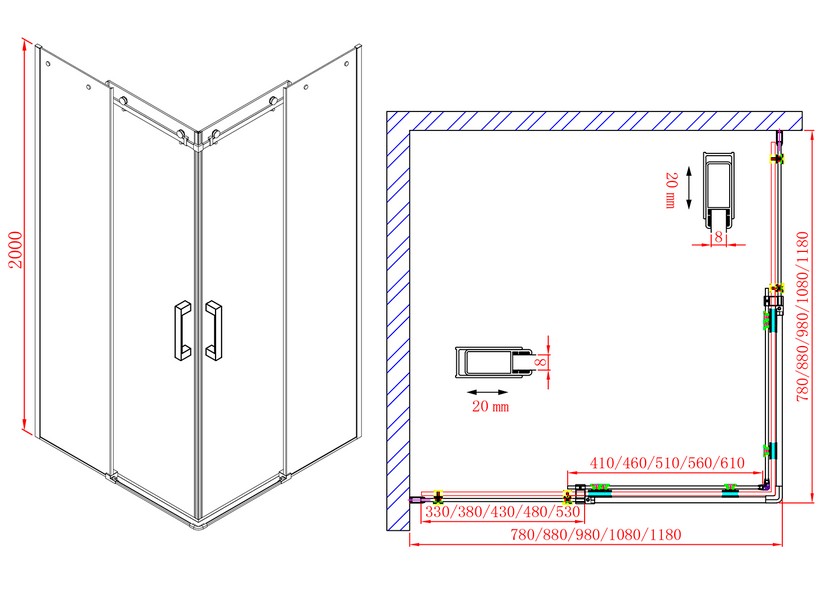 Popis Gelco DRAGON obdĺžnikový sprchový kút 80-110 x 90-120 cmGelco rozmery: 80/90/100/110 x 90/100/110/120 cm, výška: 200 cm, číre sklo, hrúbka: 8 mm