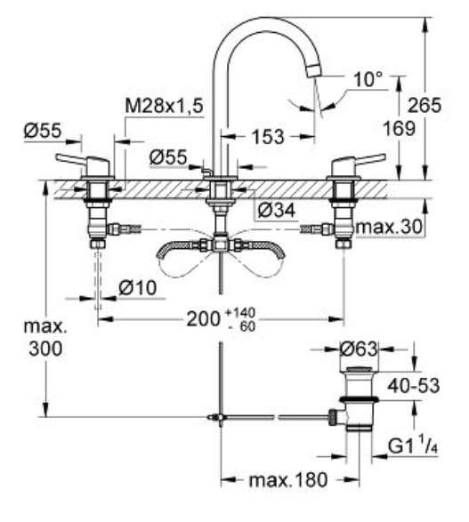 Popis Grohe CONCETTO umývadlová batéria trojprvková LGrohe s odtokovou súpravou, kohutiková, chróm,