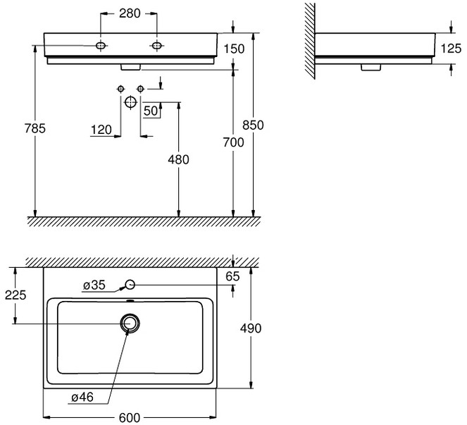 Popis Grohe CUBE CERAMIC umývadlo 60 cm PureGuardGrohe rozmery: 600x490 mm, s prepadom,materiál: keramika s povrchovou úpravou, montáž: na stenu