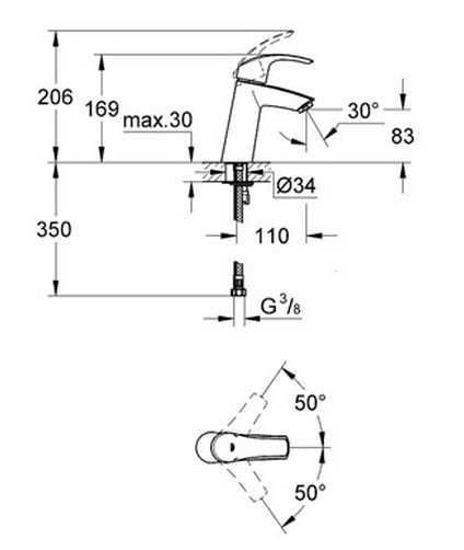 Popis Grohe EUROSMART NEW umývadlová batéria MGrohe páková batéria bez odtokovej súpravy, s keramickou kartušou 28 mm s GROHE SilkMove