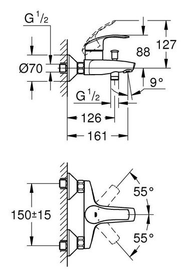 Popis Grohe EUROSMART NEW vaňová batériaGrohe páková vaňová batéria DN 15